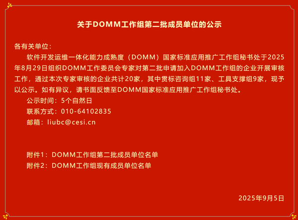 🎉祝贺成都思培安信息技术入选 DOMM 工作组(贯标咨询组)!🔥*** DevOps 标准推广平台认证,硬核实力获权威认可~六大能力域发力,共推软件开发运维标准化升级🚀携手顶尖力量,赋能行业高质量发展!#DevOps 标杆 #企业荣誉 #技术赋能